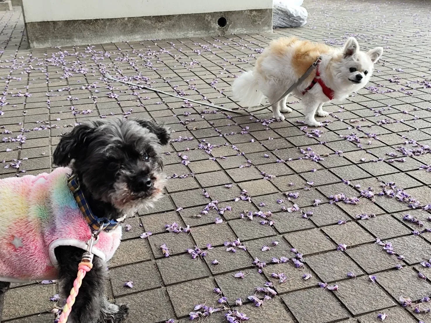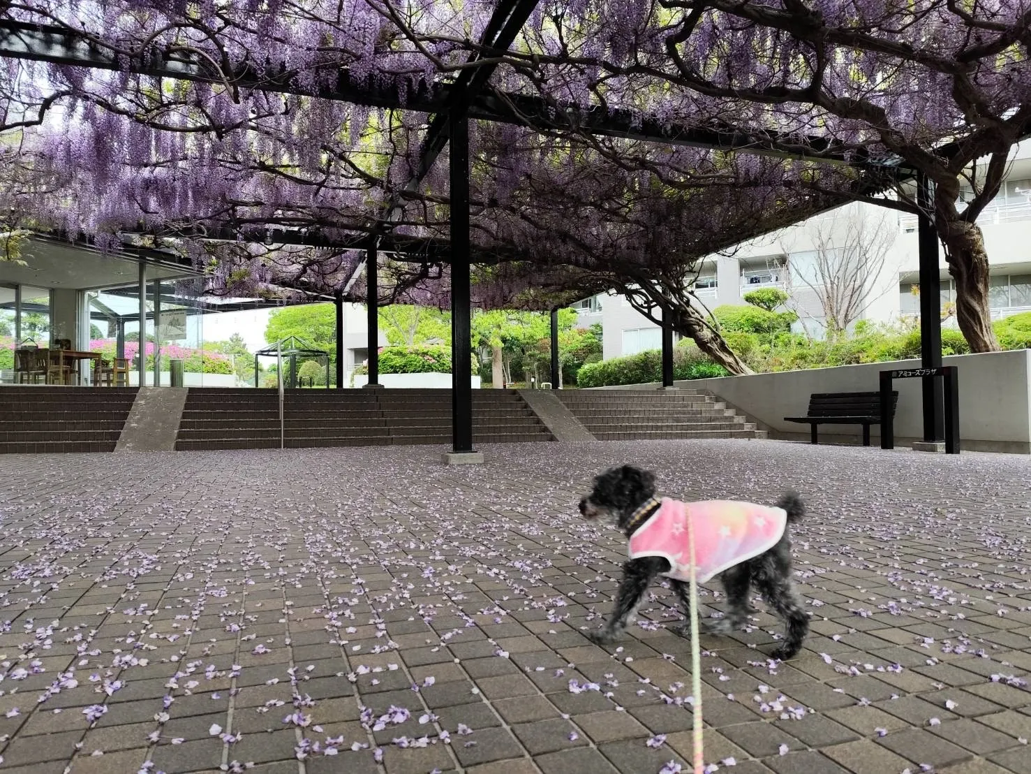 散った花びらで地面が模様のようで、綺麗ですね。