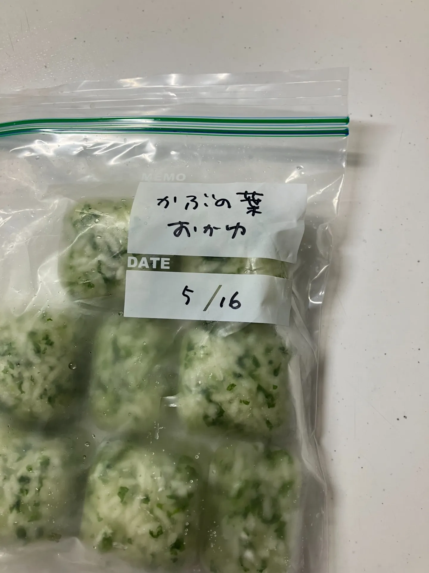 カブの葉は、孫の離乳食に、お粥を作りました。