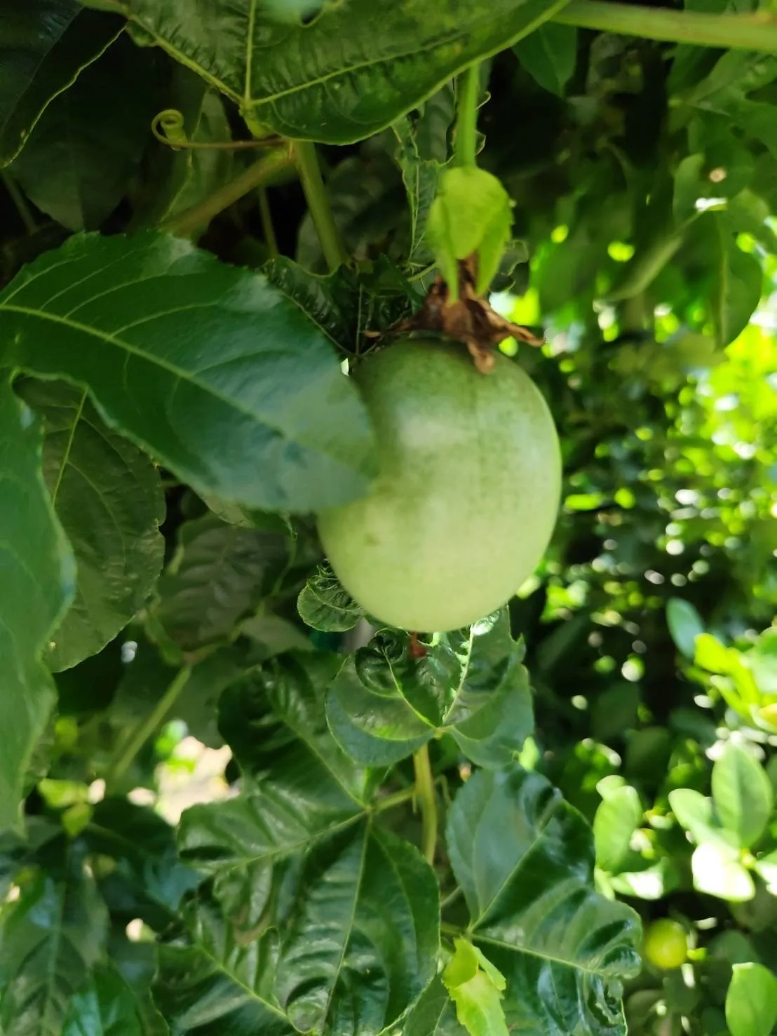 観察日記、その② 2025/06/06 こんにちは(*'▽') 事務のくまがいです。 訪問看護 杏の花🌺看護師さんが、 パッションフルーツを発見👀してから、、、 2週間目のご報告です。 観察日記、その①から、1週間で・・・・ 凄く!!大きくなって約7センチくらいになっていました。 そして、、一杯実っています。 さぁ、、、来週が、楽しみですね!(^_^) では また✿