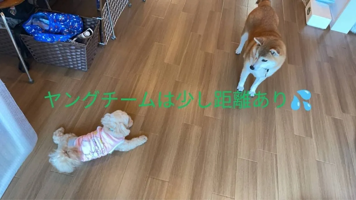 なんとも対象的な老犬チームとヤングチーム。